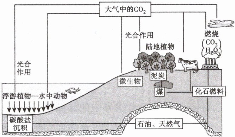 自然界中的碳循环主要是通过二氧化碳来实现的,如下页图。增加吸收和减少排放两个途径都可以降低空气中二氧化碳的量。