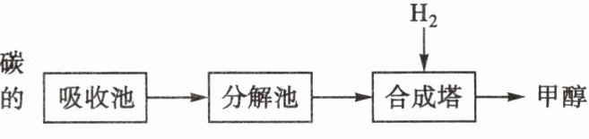 (4)有科学家提出“绿色自由”构想:如下图,把二氧化碳含量高的气体用氢氧化钠溶液吸收,然后再通化学反应在分解池内放出二氧化碳进入合成塔,在合成塔内300℃、200kPa和催化剂条件下使之变为甲醇$(CH_3OH)$和水。写出合成塔中反应的化学方程式:_________。