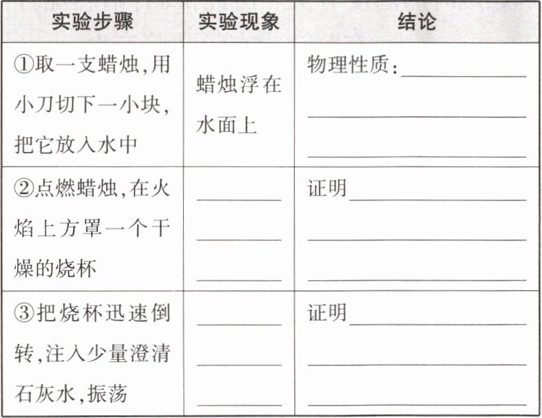 2. 结合教材中“观察与描述蜡烛及其燃烧”的探究实验,完成下列填空。