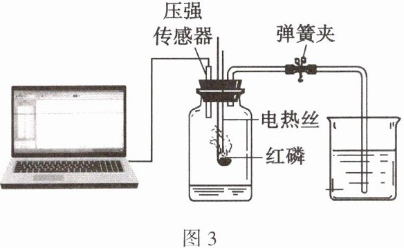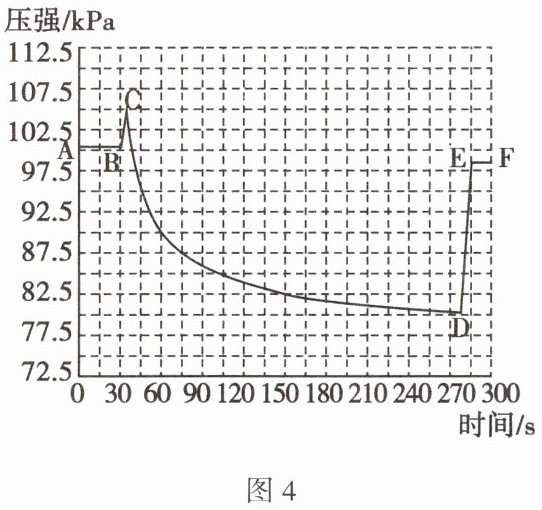 【对比思考】图3中用气体压强传感器测得瓶内的压强变化如图4所示,则图4中导致DE段压强变化的实验操作是。图3相对于图2装置的优点有哪些?(写出一条即可)。