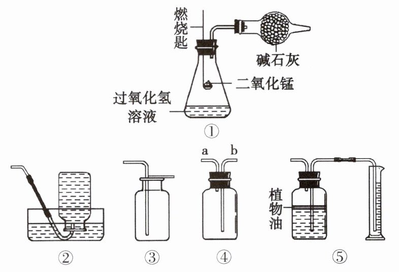 4. 某兴趣小组用如图所示的装置制取干燥的氧气,并测定生成的氧气体积。装置①中的燃烧匙可以上下移动,已知碱石灰可以吸收水蒸气。下列说法正确的是【 】