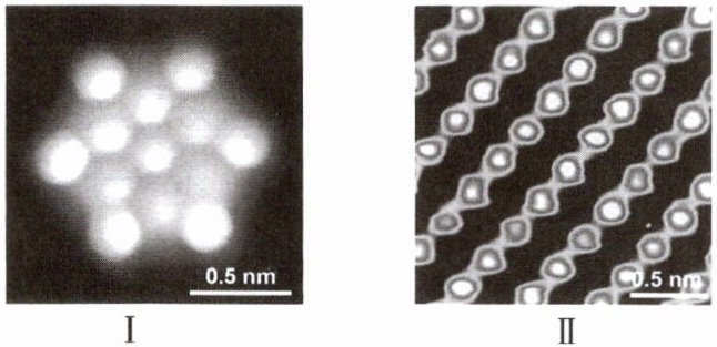 2. 随着科技的进步,我们可通过扫描隧道显微镜获得一些分子和原子的图像。根据教材图回答下列问题。