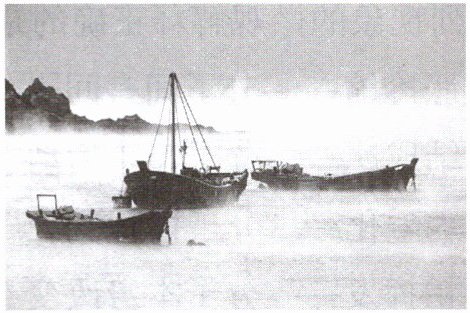 10. 海浩现象是在持续 $-15^{\circ}C$ 的超低温度下,蒸发的海水与低温冷空气中的颗粒物相结合,形成冰晶后,呈现出烟雨茫茫的自然景象,如图所示。