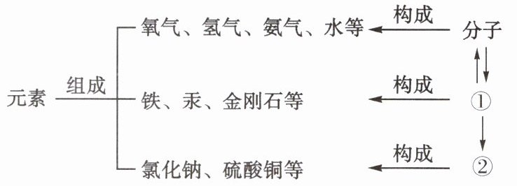 物质的组成及构成关系如图所示,图中①表示的是____,②表示的是____。