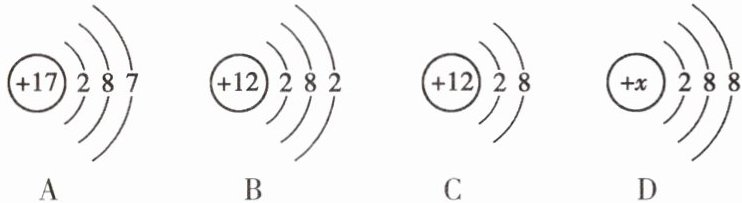 (2) D 为某粒子的结构示意图,当 $x = 16$ 时,则表示该粒子的符号为____。