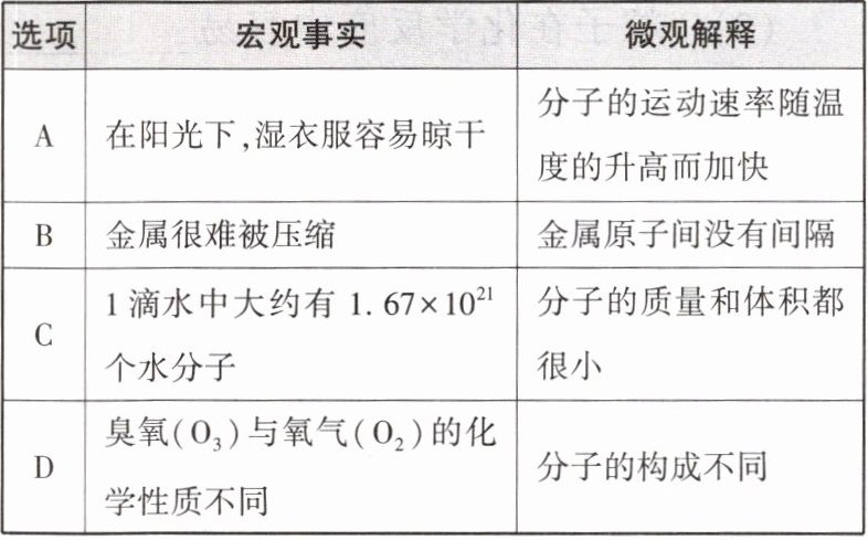 |B|金属很难被压缩|金属原子间没有间隔|