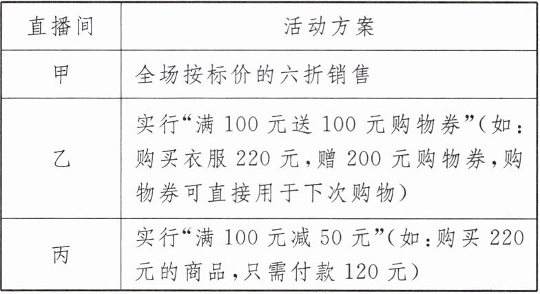 ∴小鹿选择丙直播间购买更合算.