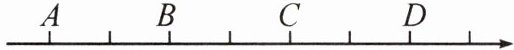 16. 如图所示,已知 A,B,C,D 四点在一条没有标明原点的数轴上.