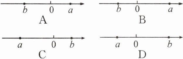 13. 已知a,b是不为0的有理数,且$|a|= -a$,$|b|= b$,$|a| > |b|$,那么用数轴上的点来表示a,b时,正确的是(
