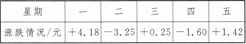 8. 某只股票一星期的涨跌情况见下表(正号表示价格比前一天上涨,负号表示价格比前一天下跌;股市周末不开盘,股价无变化):