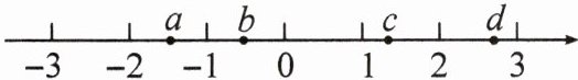 8. 有理数 $a$,$b$,$c$,$d$ 在数轴上的对应点的位置如图所示,则 $abc$