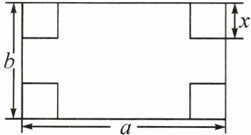 12. 如图,小明想把一张长为$a$,宽为$b$的长方形硬纸片做成一个无盖的长方体盒子,于是在长方形纸片的四个角各剪去一个边长为$x$的小正方形,用代数式表示纸片剩余部分的周长为(