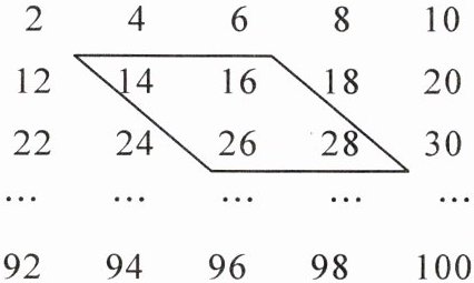 8. 新考向推理能力下列数阵是由$50个偶数按照5×10$排成的,框内有四个数.