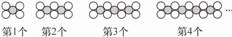 6. (2023·山西)如图,这是一组有规律的图案,它由若干个大小相同的圆片组成.第$1个图案中有4$个白色圆片,第$2个图案中有6$个白色圆片,第$3个图案中有8$个白色圆片,第$4个图案中有10$个白色圆片……依此规律,第$n$个图案中有