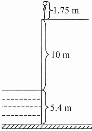 16. 如图,一名跳水运动员参加 10 m 跳台的跳水比赛(10 m 跳台是指跳台离水面的高度为 10 m),这名运动员的身高为 1.75 m,跳水池池深为 5.4 m(规定向上为正).