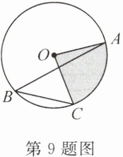 9. (2023·锦州改编)如图,点A,B,C在⊙O上,∠ABC=40°,连接OA,OC。若⊙O的半径为3,则扇形AOC(阴影部分)的面积为