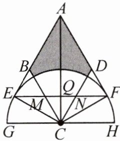 16. (2024·遵义期末)如图,四边形ABCD是菱形,半圆C分别与射线AB,射线AD相切于点E,F,GH是半圆C的直径,连接EF分别交BC,AC,CD于点M,Q,N。