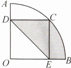 15. 【转化思想】如图,在半径为5的扇形AOB中,∠AOB=90°,C是$\overset{\frown}{AB}$上一点,CD⊥OA,CE⊥OB,垂足分别为D,E。若CD=CE,则图中阴影部分面积为