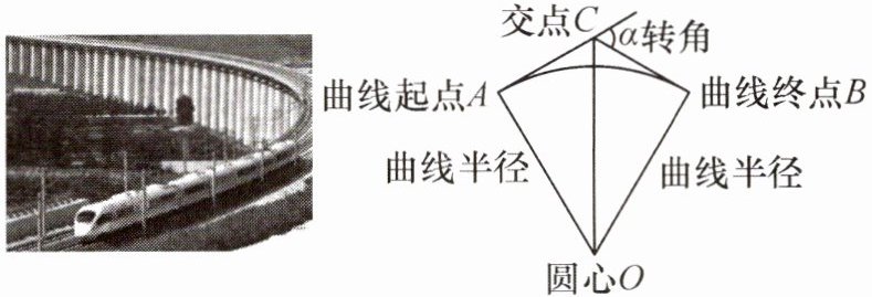 12. 新考向 真实情境(2023·山西)中国高铁的飞速发展,已成为中国现代化建设的重要标志。如图,这是高铁线路在转向处所设计的圆曲线(即圆弧),高铁在转弯时的曲线起点为A,曲线终点为B,过点A,B的两条切线相交于点C,高铁在从A到B行驶的过程中转角α为60°。若圆曲线的半径OA=1.5 km,则这段圆曲线$\overset{\frown}{AB}$的长为(