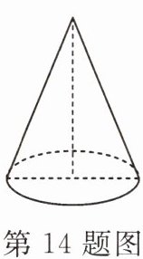 14. 如图,圆锥的高是 $ 4 $,它的侧面展开图是圆心角为 $ 120^{\circ} $ 的扇形,则圆锥的侧面积是