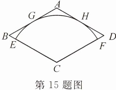 15. 如图,在菱形 $ ABCD $ 中, $ AB = 2\sqrt{3} $, $ \angle C = 120^{\circ} $,以点 $ C $ 为圆心的 $ \overset{\frown}{EF} $ 与 $ AB $, $ AD $ 分别相切于点 $ G $, $ H $,与 $ BC $, $ CD $ 分别相交于点 $ E $, $ F $。若用扇形 $ CEF $ 作一个圆锥的侧面,则这个圆锥的高为