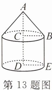 13. 蒙古包可以近似地看作由圆锥和圆柱组成。如图所示的是一个蒙古包的示意图,底面圆的半径 $ DE = 2 \, m $,圆锥的高 $ AC = 1.5 \, m $,圆柱的高 $ CD = 2.5 \, m $,则下列说法错误的是(