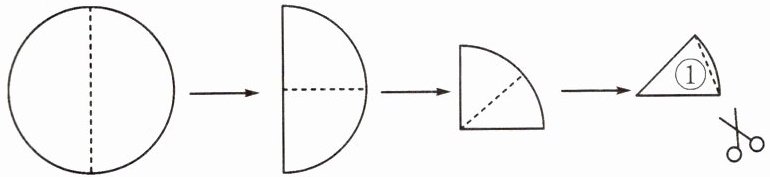 14. (2024·黔东南从江县二模)将一个半径为 1 的圆形纸片按如图所示的方式连续对折三次之后,用剪刀沿虚线①剪开,则虚线①所对的圆弧长为(