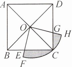 15. (2022·黔西南)如图,边长为 4 的正方形 ABCD 的对角线交于点 O,以 OC 为半径的扇形的圆心角∠FOH = 90°,则图中阴影部分面积是