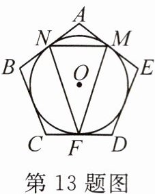 13. 如图,⊙O 是正五边形 ABCDE 的内切圆,点 M,N,F 分别是边 AE,AB,CD 与⊙O 的切点,则∠MFN 的度数为(