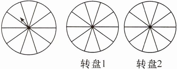 16. 请你设计一个转盘:自由转动这个转盘(转盘被分为 $10$ 等份),当它停止转动时(若指针恰好停在分界线,则重新转动一次),要求指针落在黑色区域的概率为 $\frac{2}{5}$,任选取转盘中的扇形涂黑,使转盘 $1$、转盘 $2$ 分别满足上述要求且使涂黑后的转盘都构成轴对称图形.