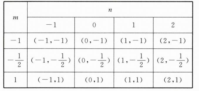 由表可知,共有12种等可能的结果,其中满足$|m+n|>1$的结果有5种,$\therefore |m+n|>1$的概率为$\frac{5}{12}$.