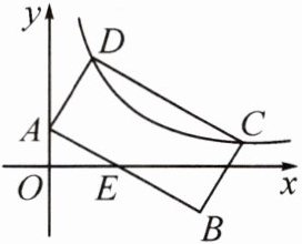 16. (2024·遵义仁怀市模拟)如图,在矩形 $ ABCD $ 中, $ AB=2 AD $,点 $ A $ 的坐标为 $ (0,1) $,点 $ C, D $ 在反比例函数 $ y=\frac{k}{x}(k>0) $ 的图象上, $ AB $ 与 $ x $ 轴的正半轴相交于点 $ E $.若 $ E $ 为 $ AB $ 的中点,则 $ k $ 的值为
