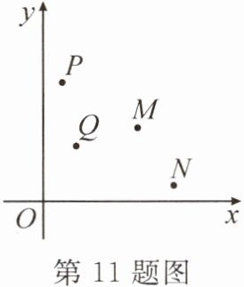 11. (2022·贵阳)如图,在平面直角坐标系中有 $ P, Q, M, N $ 四个点,其中恰有三点在反比例函数 $ y=\frac{k}{x}(k>0) $ 的图象上.根据图中四点的位置,判断这四个点中不在反比例函数 $ y=\frac{k}{x} $ 的图象上的点是(
