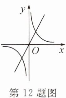 12. (2024·安顺关岭县模拟)如图,反比例函数 $ y=\frac{2}{x} $ 与正比例函数 $ y=k x $ 的图象相交于两点.若其中一个交点到 $ x $ 轴的距离是 2,则两交点之间的距离为(