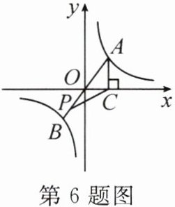 6. 如图,点 $ A $ 和点 $ B $ 都在反比例函数 $ y = \frac{4}{x} $ 的图象上,且线段 $ AB $ 过原点,过点 $ A $ 作 $ x $ 轴的垂线,垂足为 $ C $,$ P $ 是线段 $ OB $ 上的动点,连接 $ CP $。设 $ \triangle ACP $ 的面积为 $ S $,则下列说法正确的是(