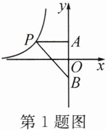 1. (2024·贵阳乌当区月考)如图,$ P $ 是反比例函数 $ y = \frac{k}{x}(k \neq 0,x \lt 0) $ 图象上的一点,过点 $ P $ 作 $ PA \perp y $ 轴于点 $ A $,点 $ B $ 是点 $ A $ 关于 $ x $ 轴的对称点,连接 $ PB $。若 $ \triangle PAB $ 的面积为 $ 18 $,则 $ k $ 的值为(
