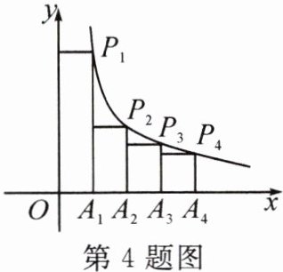 4. 如图,过反比例函数 $ y = \frac{k}{x}(k \gt 0,x \gt 0) $ 图象上的四点 $ P_1,P_2,P_3,P_4 $ 分别作 $ x $ 轴的垂线,垂足分别为 $ A_1,A_2,A_3,A_4 $,再过 $ P_1,P_2,P_3,P_4 $ 分别作 $ y $ 轴,$ P_1A_1,P_2A_2,P_3A_3 $ 的垂线,构造了四个相邻的矩形。若这四个矩形的面积从左到右依次为 $ S_1,S_2,S_3,S_4 $,$ OA_1 = A_1A_2 = A_2A_3 = A_3A_4 $,则 $ S_1 $ 与 $ S_4 $ 的数量关系为
