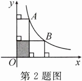 2. 如图,$ A,B $ 是双曲线 $ y = \frac{6}{x}(x \gt 0) $ 上的点,分别过点 $ A,B $ 作 $ x $ 轴和 $ y $ 轴的垂线段。若图中阴影部分的面积为 $ 2 $,则两个空白矩形的面积和为