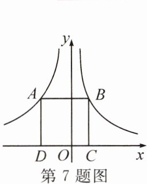 7. (2023·齐齐哈尔)如图,点 $ A $ 在反比例函数 $ y = \frac{k}{x}(k \neq 0) $ 图象的一支上,点 $ B $ 在反比例函数 $ y = -\frac{k}{2x} $ 图象的一支上,点 $ C,D $ 在 $ x $ 轴上。若四边形 $ ABCD $ 是面积为 $ 9 $ 的正方形,则 $ k $ 的值为