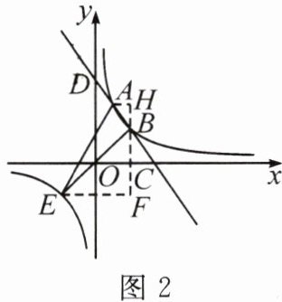 如图 2,过点 $ B $ 作 $ HF \perp x $ 轴,过点 $ A $ 作 $ AH \perp HF $ 于点 $ H $,过点 $ E $ 作 $ EF \perp HF $ 于点 $ F $,则 $ S_{\triangle ABE} = S_{梯形AEFH} - S_{\triangle BEF} - S_{\triangle ABH} $.