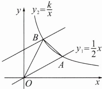 (2)把直线 $ y_1 = \frac{1}{2}x $ 向上平移 3 个单位长度后与 $ y_2 = \frac{k}{x}(x > 0) $ 的图象交于点 $ B $,连接 $ AB $,$ OB $,求 $ \triangle AOB $ 的面积.