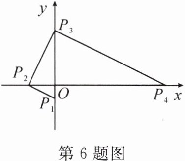 6. 如图,点 P₁,P₂,P₃,P₄均在坐标轴上,且 P₁P₂⊥P₂P₃,P₂P₃⊥P₃P₄。若点 P₁,P₂的坐标分别为(0,-1),(-2,0),则点 P₄的坐标为