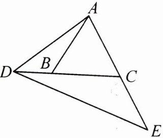 2. 如图,△ABC 为等边三角形,点 D 在线段 CB 的延长线上,点 E 在线段 AC 的延长线上,连接 AD,DE,∠ADE = ∠ABC。