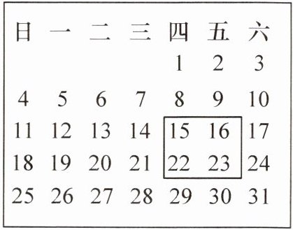 11. 在如图所示的月历表上用一个方框圈出4个数,若圈出的四个数中,最小数与最大数的乘积为65,求这个最小数(请用方程知识解答).