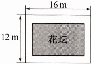 14. (2024·青岛)如图, 某小区要在长为 16 m, 宽为 12 m 的矩形空地上建造一个花坛, 使花坛四周小路的宽度相等, 且花坛所占面积为空地面积的一半, 则小路的宽为