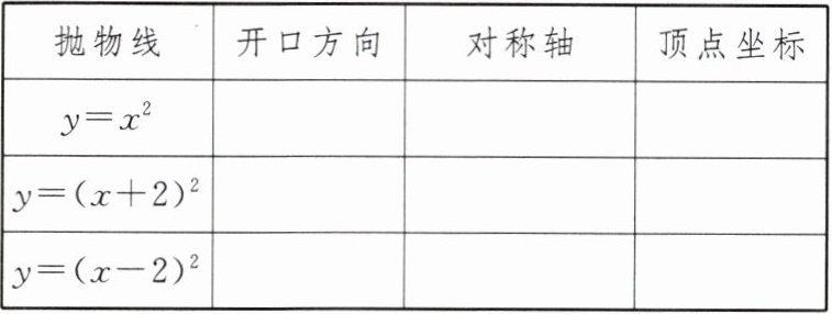 | $y = (x + 2)^2$ | 向上 | 直线$x = -2$ | $(-2,0)$ |