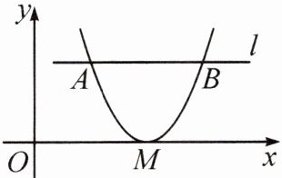 17. (本课时T15变式)如图,抛物线 $ y = (x - h)^2 $ 与 $ x $ 轴只有一个交点 $ M $,且与平行于 $ x $ 轴的直线 $ l $ 交于 $ A $,$ B $ 两点。若 $ AB = 3 $,求点 $ M $ 到直线 $ l $ 的距离。