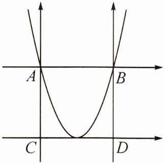 12. 若小明将如图所示的两条水平直线 $ AB $,$ CD $ 中的一条当成 $ x $ 轴,且向右为正方向;两条竖直直线 $ AC $,$ BD $ 中的一条当成 $ y $ 轴,且向上为正方向,并在此平面直角坐标系中画出了二次函数 $ y = 2(x - 1)^2 $ 的图象,则坐标原点是(