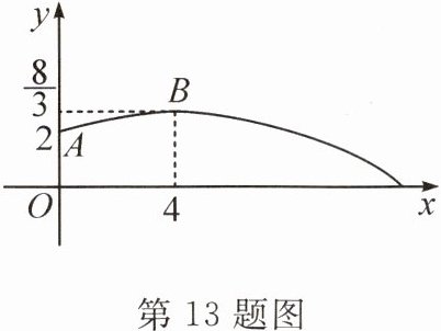 13. 新考向 真实情境 在体育测试中,九年级的一名男生推铅球,已知铅球经过的路线是某个二次函数图象的一部分,如图所示,若这个男生的出手处(点 $ A $)的坐标是$(0,2)$,铅球路线的最高处(点 $ B $)的坐标是$(4,\frac{8}{3})$,则这个二次函数的解析式为