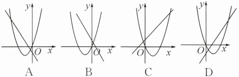3. (2024·黔南期末) 在同一平面直角坐标系中,抛物线 $ y = ax^2 + bx $ 与直线 $ y = ax + b $ 的大致图象可能是 (